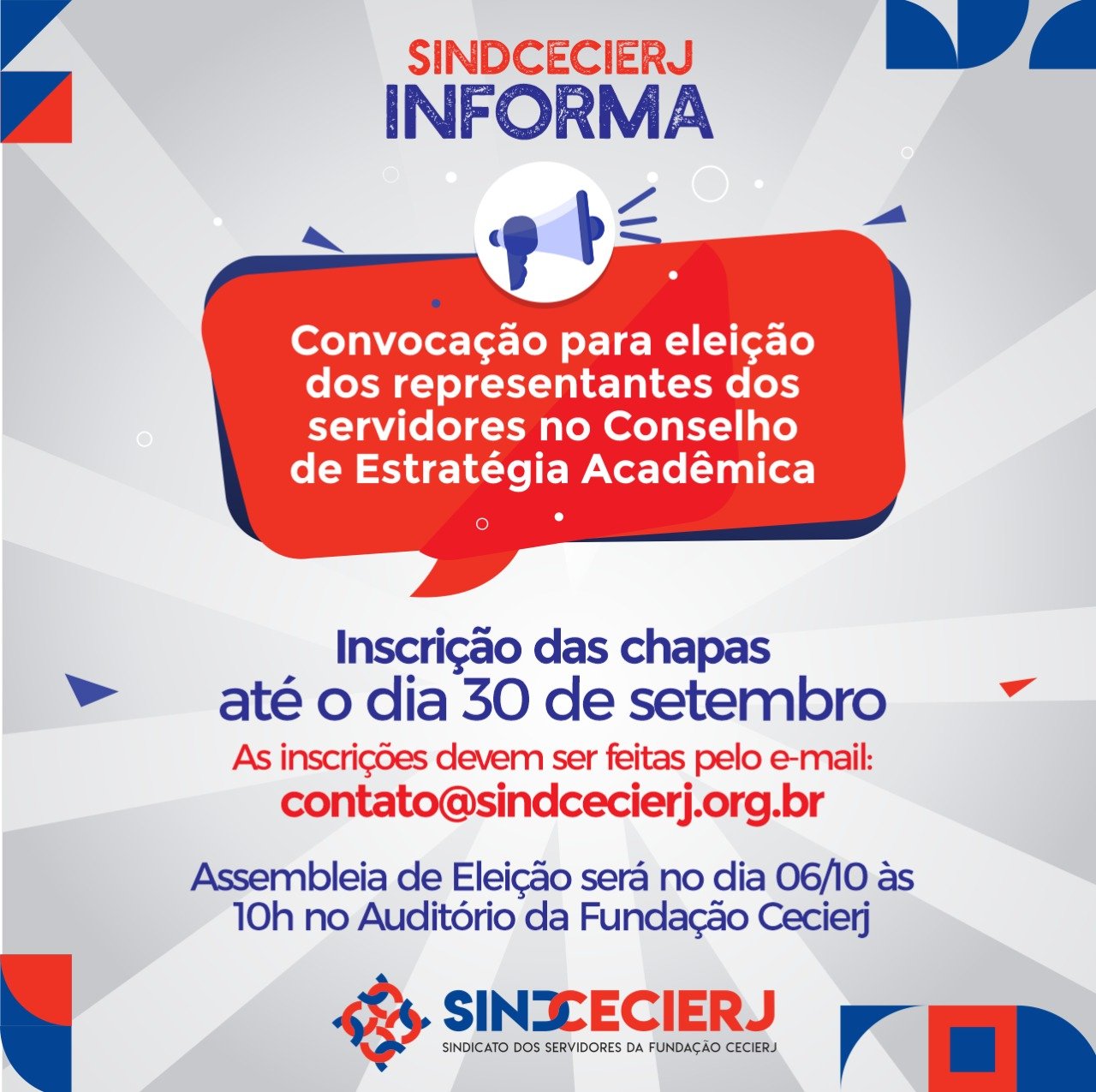 Assembleia de Eleição será no dia 06/10 às 10h no Auditório da Fundação Cecierj