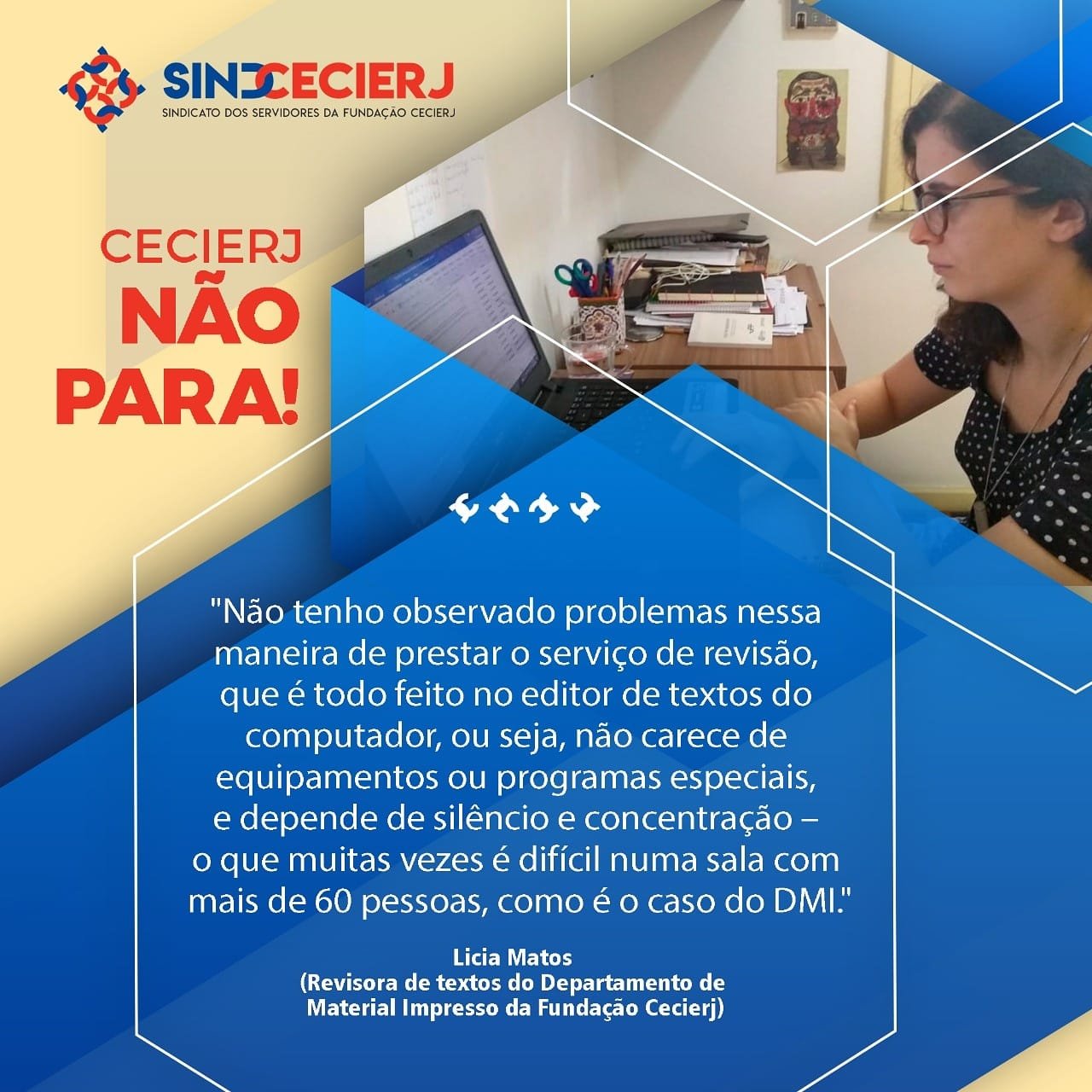 Confira o depoimento de Licia Matos, revisora de textos do Departamento de Material Impresso da Fundação Cecierj: