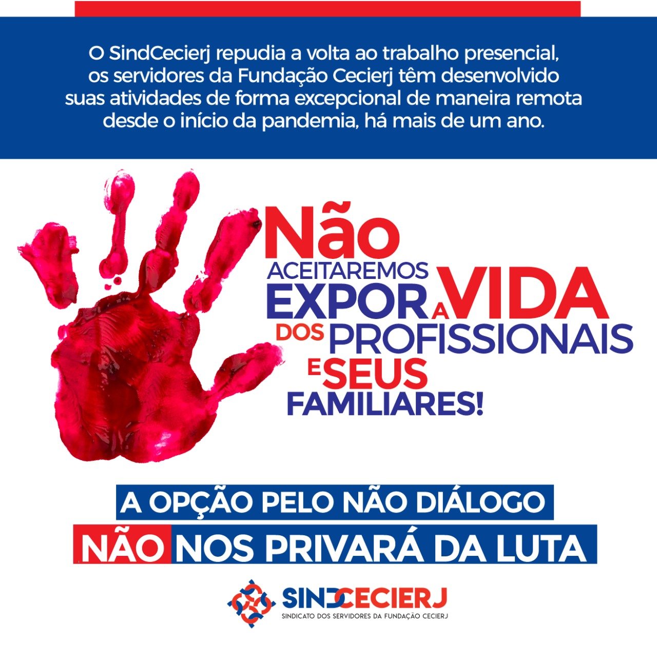 FRISAMOS que não aceitaremos que os servidores e as servidoras da Fundação Cecierj exponham suas vidas e de seus familiares à uma situação de risco de MORTE.