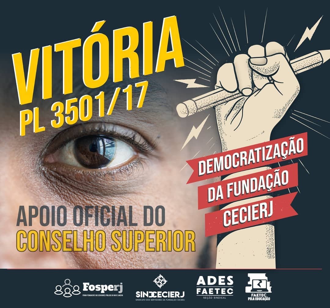 Muito em breve a Fundação Cecierj deixará de ser usada como moeda de troca política, com grande dependência da SECTI, e poderá iniciar sua trajetória de maior independência administrativa e jurídica. Vencemos nós, servidores, que acreditamos nessa tese desde o início, e iremos até o fim para garantir uma instituição mais democrática.